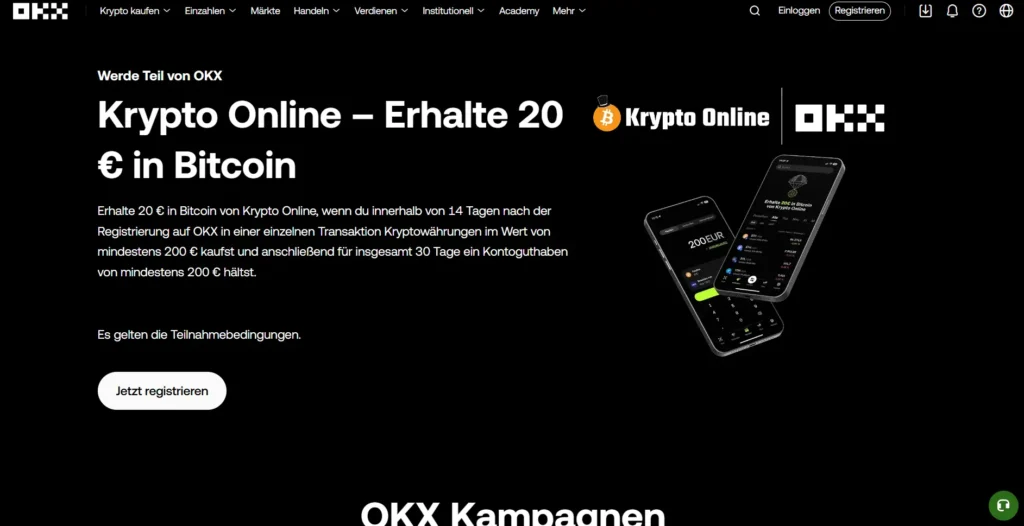 OKX Bonus (20€) und 20 % Gebühren sparen mit Referral Code „KRYPTO20“